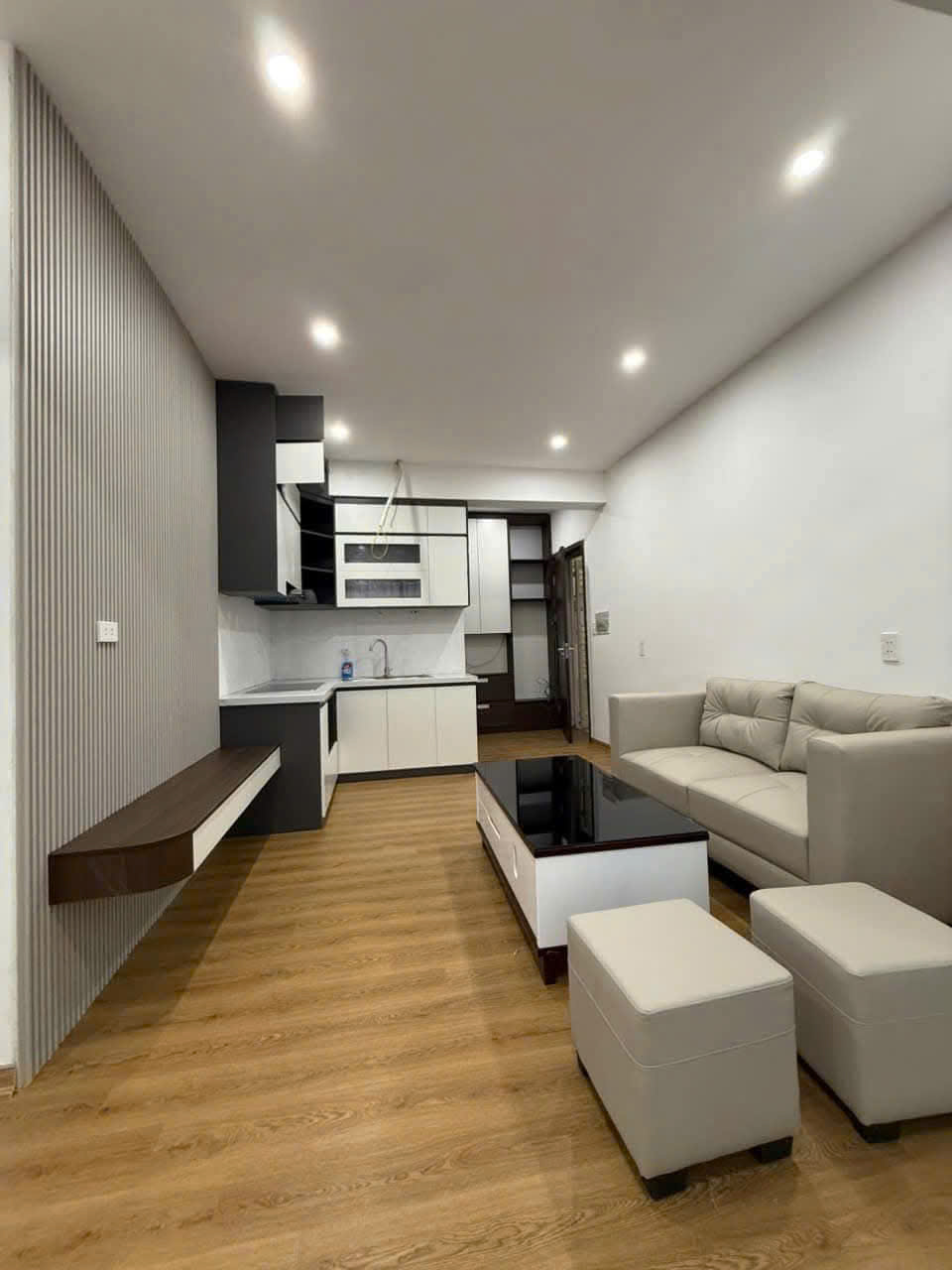 – Căn hộ nhà cậu e đã sửa và làm lại toàn bộ nội thất. Quý khách hàng chỉ việc xách vali đến ở.